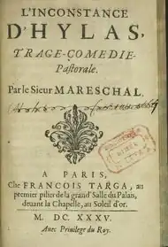 - L’Inconstance d’Hylas, tragé-comédie pastorale. François Targa, Paris 1635. (Schäferspiel)