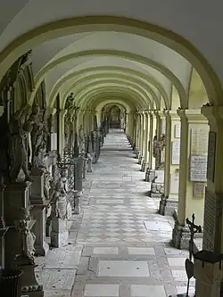 Die unterbrochene Arbeit am ‚Neugebäude‘ wurde wieder aufgenommen. Wolf Dietrich ließ einen Verbindungsgang über Friedhofsarkaden zum Bischofshof errichten.[9][10]