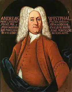 - ↑ Siehe dazu den Eintrag der Immatrikulation von Andreas Westphal im Rostocker Matrikelportal