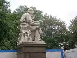 ↑Monumentale Sitzbank. In: Berliner Adreßbuch, 1914, Teil 2, S. 316. „Monumentale Sitzbank auf dem Andreasplatz, nach Entwürfen des geh. Baurats Blankenstein, mit den Marmorgruppen Mutter mit Kind von Edmund Godmansky und Vater mit Kind von W. Haverkamp. Die Bank wurde im Juli 1897, die beiden Gruppen im August 1898 aufgestellt. Kosten 80.000 M.“.