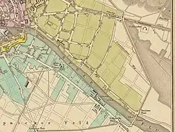 ↑Beginn der 1860er Jahre waren 31–36 Grundstücke des Gärtners Götsch, die zunehmend von Investoren gekauft und bebaut wurden.