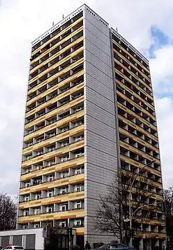 ↑ abcdTypenbau Wohnhochhaus (Memento vom 5. Juli 2017 im Internet Archive): „WHHGT 18 (Typ Berlin) – diese Bezeichnung steht für Wohnhochhaus Großtafelbauweise 18 Stockwerke. Dieser Plattenbau-Typ wurde 1969–1971 vom VEB Wohnungsbaukombinat Berlin entwickelt. Das Architektenkollektiv um Joachim Seifert und Helmut Stingl war hier federführend.“