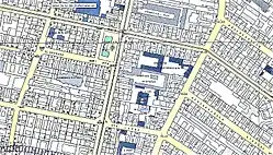 Die vorhandene Bebauung besteht teilweise aus von Kriegsschäden weniger belasteten Einrichtungen, jedoch vorzugsweise handelt es sich um neu bebaute beräumte Flächen.[62]