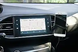 Android Auto ist ein von Google LLC entwickeltes System, um Funktionen eines Android-Smartphones mit dem Infotainmentsystem in Kraftfahrzeugen zu nutzen.[1][2] Android Auto konkurriert mit ähnlichen Systemen wie MirrorLink, Huawei HiCar für Android-Smartphones sowie mit Apples CarPlay.