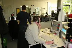 Angestellte im Großraumbüro bei hr-info (Dezember 2006)
