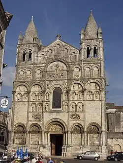 Die mehrgeschossige, durch fünffache Bogenstellung aufgeteilte Fassade der Kathedrale ist mit reichem Skulpturenschmuck besetzt und für die Geschichte der romanischen Bauplastik in Südwestfrankreich von Bedeutung; allerdings hat sie durch eine im 19. Jahrhundert von Paul Abadie durchgeführte Restaurierung gelitten.