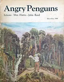 Die Zeitschrift Angry Penguins war eine bedeutende australische literarische und künstlerische Publikation, die in den 1940er Jahren eine zentrale Rolle in der Förderung der modernen Kunst und Literatur in Australien spielte. Gegründet wurde sie von Max Harris, einem jungen australischen Schriftsteller und Intellektuellen, der stark von den europäischen literarischen und künstlerischen Strömungen der Moderne beeinflusst war.[1]