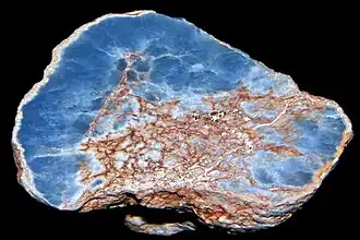 - Angelit ist die Handelsbezeichnung für ein feinkörniges und durchscheinendes, graublauviolettes Anhydrit-Aggregat.[21][22]