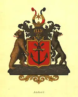 - ↑ a b Haagen Krog Steffens (Hrsg.): Anker. In: Norske Slægter 1912. Gyldendalske Boghandel Nordisk Forlag, Oslo 1911, S. 15 (runeberg.org).