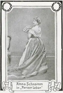 Anna Schramm, eine Tochter der Sopranistin und Schauspielerin Henriette Schramm-Graham (1803–1876) und des Schauspielers Nikolaus Schramm sowie Schwester von Auguste Schramm (nach 1819–1854; Sängerin und Schauspielerin) und Amalie Schramm (1826–1907; Sopranistin und Schauspielerin), wurde durch ihre Mutter ausgebildet, die ihre eigene Bühnenkarriere 1844 aufgab und ab diesem Zeitpunkt die Sorge um ihre Familie in den Mittelpunkt stellte. Anna Schramm stand bereits als Kind auf der Schauspielbühne, so 1841 in Nürnberg, dann Dessau, Sondershausen, Rostock, Riga, Reval und 1852/1853 in Köln, wo sie dramatischen Unterricht bei Roderich Benedix erhielt. Es folgten Stationen in Königsberg, Danzig und dann Braunschweig, wo sie neben der Schauspielerei eine Gesangsausbildung bei Franz Abt erhielt.