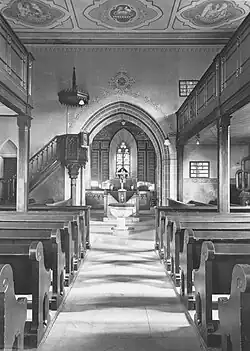 Spätestens 1864 hatte die Decke keine Balken mehr und große Emporen beherrschten den Raum. 1967 wurden die Seitenemporen beseitigt und durch eine größere Querempore ersetzt.