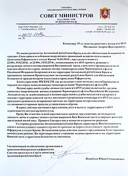 Am 11. März 2014 wurde vom Parlament der Krim die dem Referendum vorgreifende Unabhängigkeitserklärung der Autonomen Republik Krim und der Stadt Sewastopol für den Fall eines dahingehenden Ergebnisses des Referendums verabschiedet.[153]