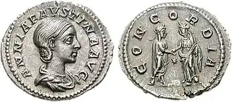 - ↑ Max Wegner: Iulia Cornelia Paula, Iulia Aquilia Severa, Annia Faustina. In: Heinz Bernhard Wiggers, Max Wegner: Caracalla, Geta, Plautilla. Macrinus bis Balbinus (= Max Wegner (Hrsg.): Das römische Herrscherbild, Abteilung 3 Band 1), Berlin 1971, S. 167–176, hier: 170, 174–176.