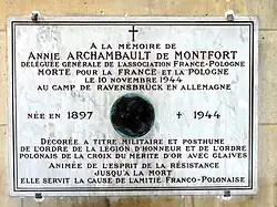 Das Ehepaar de Montfort engagierte sich nach der deutschen Besetzung Frankreichs in der Résistance. Sie organisierten mit Raymond Burgard (1892–1944), Émile Coornaert (1886–1980), Suzanne Feingold (1904–1977), Marietta Martin (1902–1944), Paul Petit (1893–1944) und weiteren Verschwörern ein Netzwerk, das von Juni 1941 bis Februar 1942 in dreizehn Ausgaben die Untergrundzeitung La France continue herausgab. Die Gruppe wurde im Februar 1942 mit der Verhaftung mehrerer ihrer Mitglieder zerschlagen. Annie de Montfort wurde am 18. März 1943 in Grenoble von der Gestapo verhaftet und zunächst im Gefängnis Fresnes inhaftiert. Am 31. Januar 1944 wurde sie mit 958 weiteren Frauen in einem Deportationszug vom Konzentrationslager Royallieu in das KZ Ravensbrück gebracht. Dort erhielt sie die Häftlingsnummer 27576.