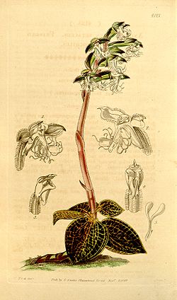 Anoectochilus setaceus, Illustration von 1844 aus Curtis's Botanical Magazine | ||||||||||||