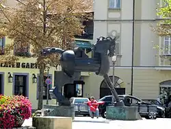 Es ist das größte von mehreren Kunstwerken auf dem Schlossplatz; daneben befinden sich noch zwei Wartehäuschen mit Flugente auf dem Dach, sowie der Ansbachchantin, ein Brunnen, der eine Amazonin beim Weingenuss sowie darum herum verschiedene Räder als Symbol für den regen Verkehr zeigt.[1]