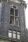 Auch sind in der Art der Behandlung der Steine und damit in deren Oberflächenstruktur Differenzierungen erkennbar: Die Eckquader sind grob behauen, dagegen haben die herausgehobenen Architekturteile aus Cottaer Sandstein eine glatte Oberfläche.