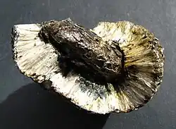 | Bruch; Tenazität | muschelig;[8] spröde, aber Fasern elastisch[5] |
