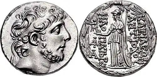 - ↑ Alfred Raymond Bellinger: The End of the Seleucids. In: Transactions and Proceedings of the Connecticut Academy of Arts and Sciences. 38, 1949, S. 87.