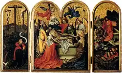 Triptychon von Robert Campin, 1415 (sogen. Seilern-Triptychon aus seiner Sammlung)