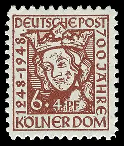 - Festpostkarte zur 700-Jahr-Feier der Grundsteinlegung des Kölner Doms (1948)