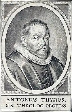 - A. J. Lamping: THYSIUS, ANTONIUS. In: Biografisch Lexicon voor de geschiedenis van het Nederlands Protestantisme. Uitgeveru Kok, Kampen 2001, ISBN 90-435-0384-3, Bd. 5, S. 505. (niederländisch)
