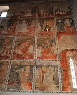 Das elfte Fresko zeigt „Die Segnung der Menschen durch den Heiligen“. Antonius, inmitten einer Menschenmenge, hebt die Hand zum Segen. Eventuell wird auf dem Bild auch die Heilung eines Kranken behandelt. Auf dem zwölften Bild erkennt man den „Teufel in Gestalt eines Riesen“. Die Darstellung wird allerdings durch die im 18. Jahrhundert eingebaute Empore gestört. Auf der linken Seite sieht man den Teufel, der mit seinem Kopf an den oberen Rand des Bildes stößt, als würde er den Himmel berühren.