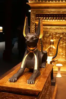 Eine ähnlich wie im Grab Tutanchamuns gearbeitete Anubis-Figur fand sich im Grab (KV57) von König Haremhab im Tal der Könige,[15] der jedoch die Einlagen aus Edelstein fehlten.
