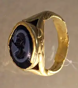 Das Tragen von Ringen war im Römischen Reich weit verbreitet, wobei das verwendete Material zunächst streng an soziale Klassen gebunden war. So durften Goldringe anfangs nur von Senatoren getragen werden. Im Jahr 23 n. Chr. wurde das Recht auch den equites, der römischen Ritterschaft, zugestanden,[1] schließlich wurde in Ausnahmefällen auch Freigelassenen gestattet, Goldringe zu tragen. Darüber hinaus gab es Ringe auch aus Silber und Bronze, vor allem aber auch aus Eisen, die als Zeichen militärischer Tugend galten.[2] Laut Herodian gewährte Septimius Severus im Jahr 197 allen Soldaten das Privileg, goldene Ringe zu tragen.[3]