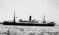 Das 7.832 BRT große Dampfschiff Apapa wurde 1914 im Glasgower Stadtteil Govan auf der Werft Harland & Wolff’s Govan Shipyard, einer 1912 in Betrieb genommenen Außenstelle der Belfaster Werft Harland & Wolff, gebaut. Das Schiff lief am 30. September 1914 vom Stapel und wurde am 4. März 1915 fertiggestellt. Der aus Stahl gebaute Rumpf war 135 Meter lang, 17,47 Meter breit und hatte einen maximalen Tiefgang von 9,54 Metern. Das Schiff wurde für die 1852 gegründete Reederei Elder Dempster & Company Limited (oft abgekürzt Elder Dempster Lines) gebaut, die sich auf den Passagier- und Frachtverkehr zu den Vereinigten Staaten und Kanada, aber auch zu ferneren Zielen wie Afrika, die Karibik, die Kanarischen Inseln und Indien spezialisiert hatte. Die Apapa wurde für den Westafrika-Service eingesetzt. Sie war eines der bis dahin größten Schiffe der Reederei.
