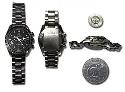 Die Omega Speedmaster Professional („Moonwatch“) mit der Rückseite des „Moon-Dollar
