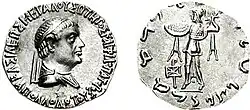 Seine Münzen zeigen auf der Vorderseite meist sein Porträt und griechische Legenden, auf der Rückseite befindet sich ein Bild einer stehenden Athene mit Legenden in Kharoshthi. Andere Prägungen zeigen einen Apollo auf der Vorderseite, sicherlich als Referenz zum Namen des Herrschers. Eine seiner Münzen ist von Zoilos II. überprägt worden.