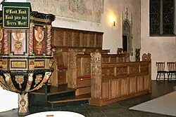- Das Chorgestühl mit Flachschnitzereien ist mit 1548 bezeichnet.