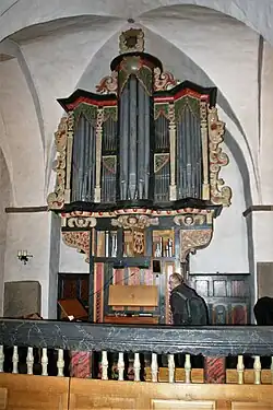 - Der barocke Orgelprospekt wurde Ende des 17. Jahrhunderts eingebaut, der Sockel ist von 1971.