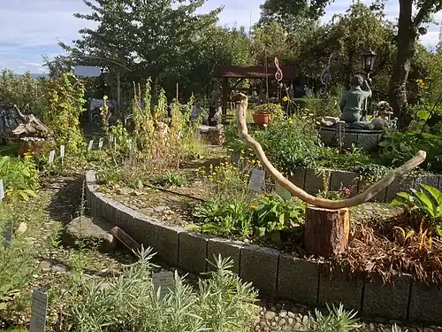 Ein Apothekergarten (auch Arzneigarten, Arzneipflanzengarten, Medizinischer Garten, Heilpflanzengarten, lateinisch hortus medicus) ist ein Kräutergarten, in dem sich Heil- und Giftpflanzen, aber auch Gewürzpflanzen befinden können, die als Drogen zur Herstellung von Arzneimitteln dienen.[1][2][3]