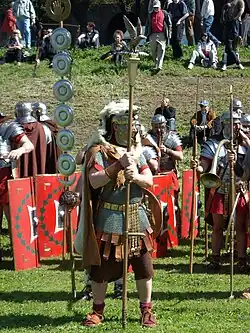 - ↑ Ross Cowan: Imperial Roman Legionary, AD 161–284 (= Warrior. 72). Illustrations by Angus McBride. Osprey Publishing, Oxford 2003, ISBN 1-84176-601-1.