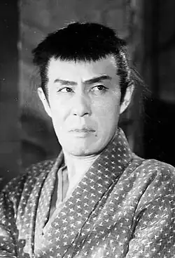 Arashi Kanjūrō war ursprünglich ein Kabuki-Schauspieler. 1927 begann er in Stummfilmen aufzutreten. Mit seinen Rollen als Schwertkämpfer in den beiden historischen Film-Serien „Kuruma Tengu“[A 1] (1927 bis 1956) und „Naruto hichō“[A 2] (1929 bis 1955) wurde er eine Kassenstar. Am Ende des Weltkriegs war er in etwa 100 Filmen aufgetreten.
