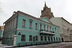 Ebenfalls prominent war die Geschichte des Herrenhauses, das an dieser Stelle bis Anfang des 20. Jahrhunderts gestanden hatte. In den 1840er-Jahren hatte hier der bedeutende slawophile Philosoph Alexei Chomjakow gelebt, zu dessen häufigen Gästen unter anderem der Schriftsteller Nikolai Gogol gehörte. Von 1879 bis zum Abriss des Hauses 1901 gehörte es dem Juristen Wladimir Prschewalski, dem Bruder des weltberühmten Forschungsreisenden Nikolai Prschewalski, welcher bis zu seinem Tod ebenfalls ein häufiger Besucher des Hauses gewesen war.