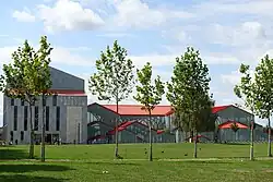 Besucherzentrum Modernes Gebäude 2013 (Baubeginn) vor Insula 35 und 40