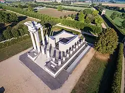 Wenig später wurde die B 57 auch für die Fortführung der Straße südlich der römischen Herberge durchstochen, welche nun das Areal zwischen Siegfriedstraße und alter B 57 an den Park anschließt. Der eigentliche Rückbau der dem APX zugeschlagenen Straßen begann 2011 mit dem Rückbau des Orwatersweges, der Verbindung zwischen Trajanstraße und Trajanring nahe den Großen Thermen, die Trajanstraße zwischen APX-Verwaltung und Siegfriedstraße und die Siegfriedstraße zwischen Trajanstraße und alter B 57 folgten wie auch die alte B 57 in den Jahren danach. Darüber hinaus wurden in den Jahren 2011 und 2012 über 450 Linden gepflanzt, die den antiken drei Kilometer langen Straßenverlauf in der Erweiterung des APX nachzeichnen und das neue Areal auf diese Weise auch gestalterisch an das alte Areal anzuschließen.[6] Im November 2013 begann am bisherigen südlichen Nebeneingang der Bau eines Besucherzentrums an der ehemaligen römischen Stadtmauer nahe dem Amphitheater. Nach dessen Fertigstellung Anfang 2015[7] wurde auch der Haupteingang vom Molenturm, welcher an der von der Stadt abgewandten Seite des Parks liegt, zum Besucherzentrum verlegt, um den Park besser an die Xantener Innenstadt anzubinden. Der bisherige Nebeneingang am Römermuseum und der bisherige Haupteingang am Hafentor bleiben aber weiterhin erhalten.[8] Vor dem Besucherzentrum, an der Straße Am Rheintor, wurde darüber hinaus auf dem Areal einer im Sommer 2014 abgerissenen Tankstelle ein neuer Parkplatz eingerichtet.[9] Dieser von Anfang an als provisorisch gekennzeichnete Eingang wurde im April 2019 wieder geschlossen zugunsten eines neuen Eingangs an der Trajanstraße, der ebenfalls Parkplätze für Busse, PKW und Fahrräder und eine nähere Anbindung an den Bahnhof Xanten bietet.[10] Dieser Eingang trägt ebenfalls den Namen "Römermuseum". Ein Parkleitsystem der Stadt Xanten ist eingerichtet.
