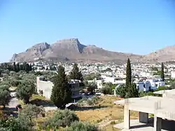 Sehenswert sind der unter italienischer Herrschaft Anfang des 20. Jahrhunderts errichtete Glockenturm der 1845 erbauten Kirche Agios Archangelos sowie das zwischen 1454 und 1476 von den Johannitern erbaute Kastell, von dem neben der 5–7 m hohen Mauer und der kleinen Kapelle Agios Ioannis im Inneren aber nur Ruinen überdauert haben. An die Außenmauer des Kastells wurde während der Militärdiktatur das griechische Wort „griechisch όχι“ („nein“) geschrieben und ist so heute noch zu lesen.