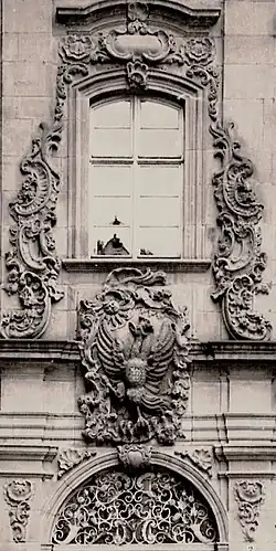 In der zweiten Hälfte des 18. Jahrhunderts erlebte die Stadt als Hauptstapelplatz für den Handel zwischen dem Rhein und dem Donaugebiet erneut eine kulturelle und wirtschaftliche Blüte. Es entstanden zahlreiche Bauten im Stil des Barock, wie der Hafenmarktturm, den der Straßburger Johann Georg Meyer im Jahre 1730 schuf.[21] Für die Epoche des Barock zwischen 1600 und 1780 waren die höfische Lustarchitektur und die Darstellung von Pomp, Luxus und Pracht in der Architektur der katholischen Kirche[22] charakteristisch. Als Beispiel für die Prachtentfaltung der Kirche gilt das durch die Gebrüder Franz und Johann Michael Keller und A. Colomba barockisierte Deutschordensmünster.[23] J. M. Keller und sein Bruder Franz waren die Vorreiter von Balthasar Neumann und Fischer von Erlach.[24] Als Beispiele für die repräsentative, höfische Architektur der Deutschordensherren in Heilbronn sind die seit 1688 in Sontheim befindliche barocke Sommerresidenz[25] und der nach Plänen von Wilhelm Heinrich Behringer errichtete Große Deutschhof im Stil des Hochbarock[26] zu nennen, der für Heilbronner Verhältnisse eine beträchtliche Größe hatte und das Stadtbild bis heute prägt.[27] Die 24-achsige geknickte Westfassade und die Fassade des anschließenden achtachsigen Südflügels wurden mit ionischen Pilastern, Zwerchgiebeln und säulenbestandenen Portalen gegliedert.
