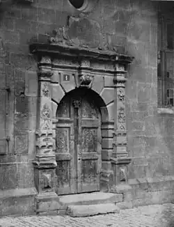 Der Hafenausbau mit Radkran im Jahre 1515 brachte einen weiteren wirtschaftlichen Aufschwung, der den Bau des ersten Renaissanceturms nördlich der Alpen und des Rathauses mit Kunstuhr ermöglichte. So schuf 1513 Hans Schweiner den Turm der Kilianskirche.[18] Die Architektur der Renaissance setzte sich in der Gestaltung des Rathauses in den Jahren 1579 bis 1583 durch Hans Kurz und Isaak Habrecht fort. Hans Kurz war einer der wichtigsten Baumeister der Renaissance in Heilbronn.[19] Er baute auch das Imlin’sche Haus. In den Jahren 1598 bis 1600 wurde im Auftrag des Rats das Fleischhaus nach den Plänen von Hans Stefan errichtet, wobei Jakob Müller als Bildhauer bei der Gestaltung der Figuren tätig war.[19] Die wichtigsten Beispiele für die Renaissance in Heilbronn sind der Kirchturm der Kilianskirche, das Alte Rathaus, das Cäcilienbrunnenhaus und das Fleischhaus.[20] Verloren gegangen ist die Dreifaltigkeitskirche, die ehemalige Katharinenspitalkirche, die 1483 aus einer älteren Kapelle hervorgegangen war, während der Reformation evangelisch wurde und nach einem Brand im Jahr 1624 mit einem aufwändigen Volutengiebel und Portal im Renaissancestil wiederaufgebaut wurde.
