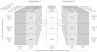 - Die globale Sicht wird verwendet, um die öffentlichen Sichten verschiedener Systeme zu verknüpfen und ein gemeinsames bzw. innerhalb der Kooperation „globales“ Verständnis über geteilte Informationssystem-Elemente sicherzustellen.