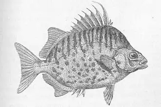 - Punktstreifen-Argusfisch (Selenotoca multifasciata (Richardson, 1846)), bis zu 40 cm lang, Sulawesi, Indonesien, West- und Ostaustralien, und Neukaledonien.
