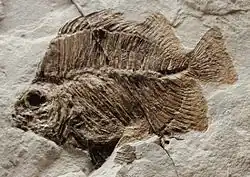 Der fossile Argusfisch Scatophagus frontalis ist aus dem mittleren Eozän der norditalienische Monte-Bolca-Formation, die aus Ablagerungen der Tethys entstand, bekannt[2].