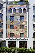 Arik Brauers künstlerische Gestaltung des Hauses reicht von der Außenfassade über den Innenhof und die Stiegenhäuser bis in die einzelnen Wohneinheiten und den Gastronomiebetrieb. Die Straßenfassade in der Gumpendorfer Straße zeigt zwei Bilder, die sich aus zahlreichen Fliesen zusammensetzen und in Summe rund 150 m² groß sind. Laut dem Künstler stellt das Bild Das Ringen um Harmonie dar. Im Eingangsbereich befinden sich ein Deckengemälde und zwei Aquarien, auch die Gänge und Stiegenhäuser wurden künstlerisch gestaltet. Die Oberlichter der Wohnungstüren sind bemalt, die Badezimmer wurden, wenn von den Mietern gewünscht, mit Fliesenbildern versehen.