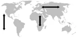 Viele dieser Voraussetzungen waren in anderen Erdteilen nicht oder nur teilweise gegeben, so dass sich entsprechende Entwicklungen außerhalb der eurasischen Landmasse gar nicht oder nur langsamer und ineffizienter vollzogen. So wurden beispielsweise domestizierbare Tiere in Nordamerika durch steinzeitliche Jäger ausgerottet. Die Nord-Süd-Ausrichtung und die Geographie des amerikanischen Kontinents wiederum verhinderte die Verbreitung von domestizierten Pflanzen aus gemäßigten Breitengraden, da tropische Zonen, der Isthmus von Panama und die Wüsten im Süden Nordamerikas als natürliche Barrieren wirkten. In den anderen Erdteilen wie etwa Afrika und Australien fehlten Grundvoraussetzungen von vornherein, wie etwa das Vorhandensein domestizierbarer Tiere, gepaart mit ungünstigen geographisch-klimatischen Bedingungen (Australien) und der nachteiligen Nord-Süd-Achse mit dazwischenliegenden Tropenzonen (Afrika).