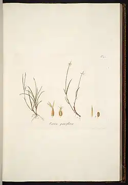 Die Erstveröffentlichung von Carex pauciflora erfolgte 1777 durch John Lightfoot in Flora Scotica, Band 2, Seite 543, Tafel 6, fig. 2.[5] Das Artepitheton pauciflora bedeutet „wenigblütig“.