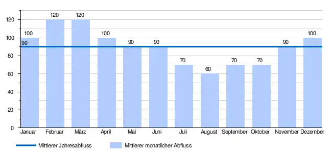 - ↑ Martin Pfaundler, Rolf Weingartner, Robert Diezig: „Versteckt hinter den Mittelwerten“ – die Variabilität des Abflussregimes. In: Hydrologie und Wasserbewirtschaftung (HyWa). Jg. 50, Heft 3, 2006, S. 116–123, hier Tabelle auf S. 119 (Download [PDF; 3,2 MB; abgerufen am 31. August 2020]). Abrufbar unter Gesamtes HyWa Heft 3, 2006..
